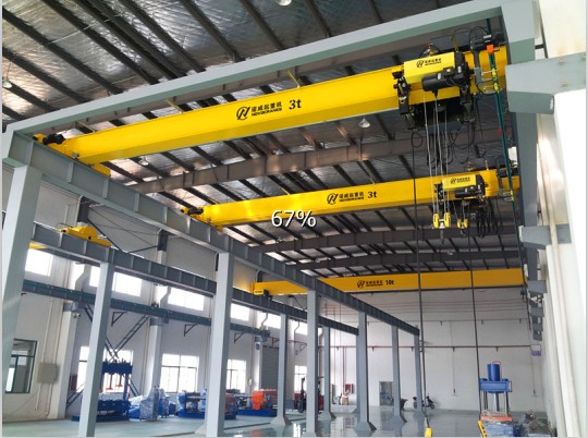 欧式起重机,具有自重轻,结构小巧,能耗较低,在桥架上设置一台小车及起升机构,小车可以前后运行,大车运行等机构,实现物料物体在立体空间搬运,欧式起重机采用独特的设计理念,具有尺寸小,重量轻,轮压小的特点。与传统起重机相比,吊钩至墙面的极限距离小,净空高度低,科力起重机更能贴近前面作业,起升高度高,实际增加了现有厂房的有效工作空间。由于起重机具有重量轻,轮压小的特点,新厂房空间可以设计的高度低,减少厂房投资成本,功能齐全。较小的厂房意味着初期建设投资,以及长期供热、空调及其他维护费中可以节省一笔可观的资金。